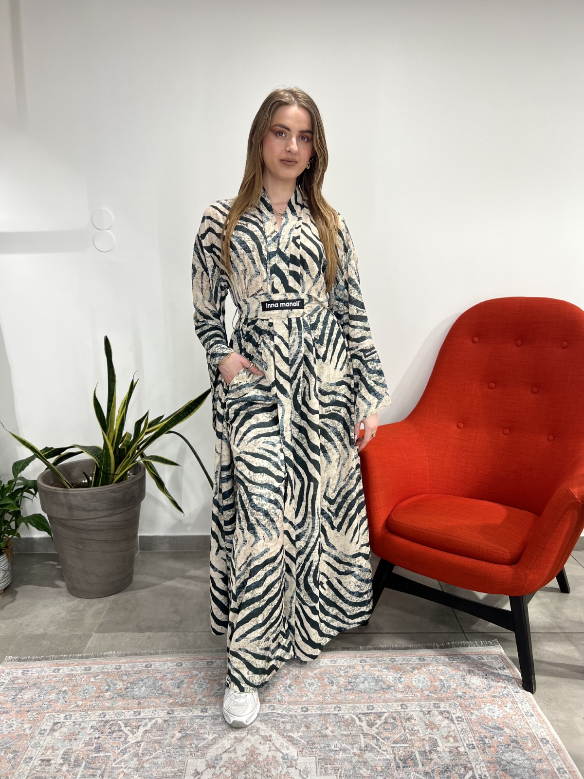 Inna Manoli Printed Chiffon Robe Dress 17609 Zebra nude