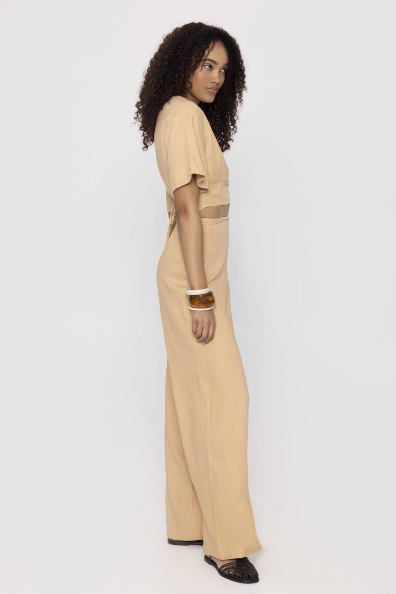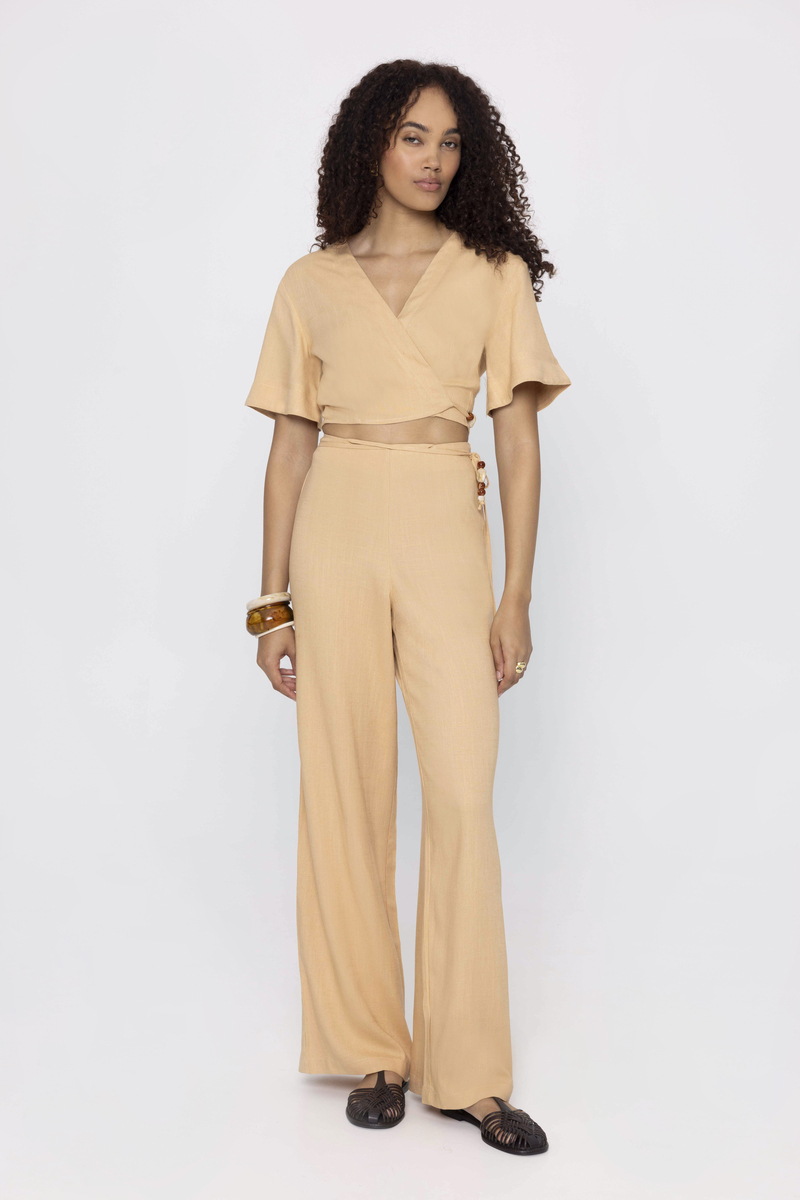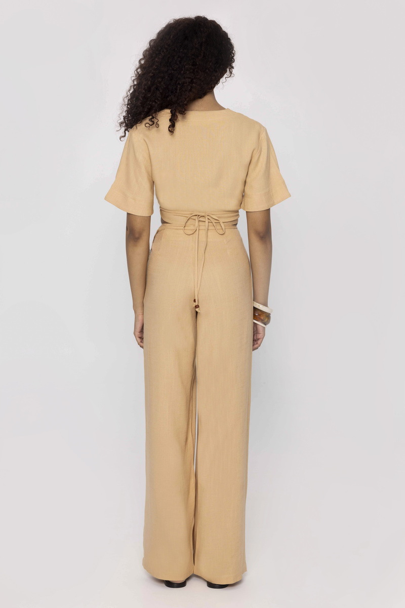Μονόχρωμο Λινό Παντελόνι σε Χαλαρή Γραμμή με Διακοσμητικό Κορδόνι και Χάντρες DENISE